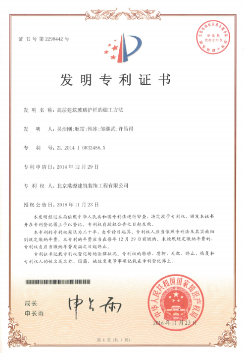 發(fā)明專利-高層建筑玻璃護(hù)欄的施工方法