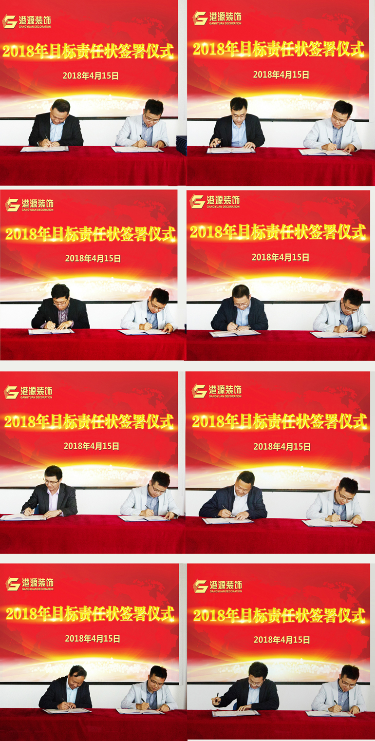 為全面落實(shí)公司年度戰(zhàn)略目標(biāo),強(qiáng)化績效和激勵(lì)機(jī)制,4月15日,港源裝飾各運(yùn)營分公司在會議上簽署了2018年度目標(biāo)責(zé)任狀,并明確地將年度目標(biāo)層層下達(dá),使“年初有計(jì)劃、年底有考核”的閉環(huán)管理模式真正實(shí)現(xiàn)落地!