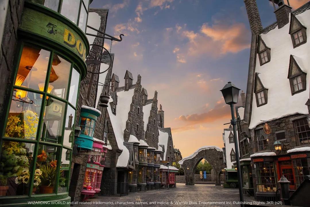 這里是電影中另外一個經(jīng)典場景——霍格莫德™巫師村,它是霍格沃茨學(xué)園旁邊的巫師村,也是霍格沃茨特快列車從九又四分之三站臺駛出后的終點站。
