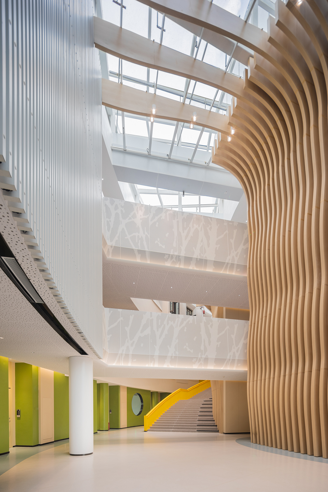▲ 中庭高達(dá)14米的“樹狀”異形鋁方通