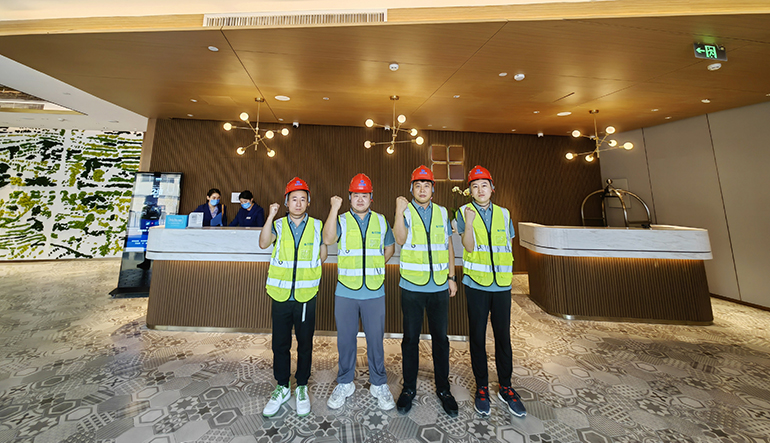 港源裝飾項目管理團隊由一批施工經(jīng)驗豐富的管理人員組成。在項目開工初期,團隊便根據(jù)工程實際情況,針對項目的重難點及關(guān)鍵節(jié)點進行了梳理及分析,對重點區(qū)域及技術(shù)難點做出了專項施工方案,對本工程的所有節(jié)點收口進行全員梳理及專業(yè)深化,對關(guān)鍵節(jié)點提前理清工作面技術(shù)方案,科學組織人力物力,對可能發(fā)生的例外情況進行提前預(yù)判及防范,并且依次編制了